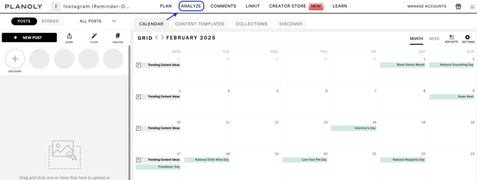 3. Tap on the arrow next to the Instagram Planner Icon