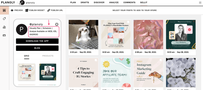 Linkit and Sellit are tools within Planoly's Instagram Planner to easily create your own link in bio and simplify your followers’ browsing and shopping experience!