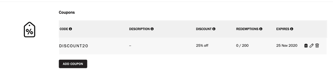 12. Hover over the coupon to copy code, edit the description, or delete the coupon