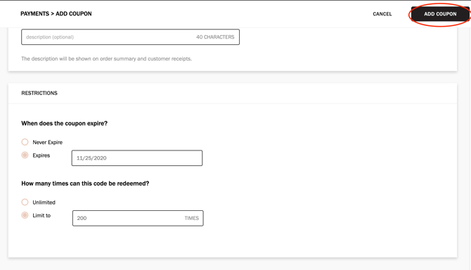 9. Select when you want the coupon to expire, and how many times it can be redeemed